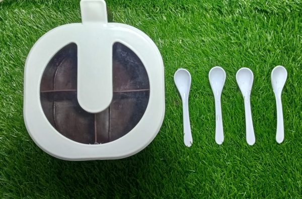 - – 4 Grid Spices Storage Box With 4 Spoons Free.
